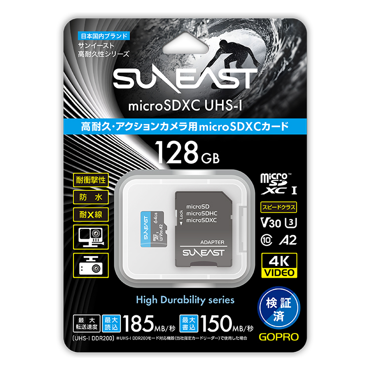 GoPro検証済みのメモリーカード。産業用レベルのTLC NANDによって書き換え回数3000回を実現!