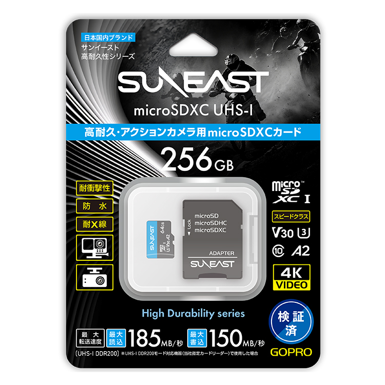 GoPro検証済みのメモリーカード。産業用レベルのTLC NANDによって書き換え回数3000回を実現!