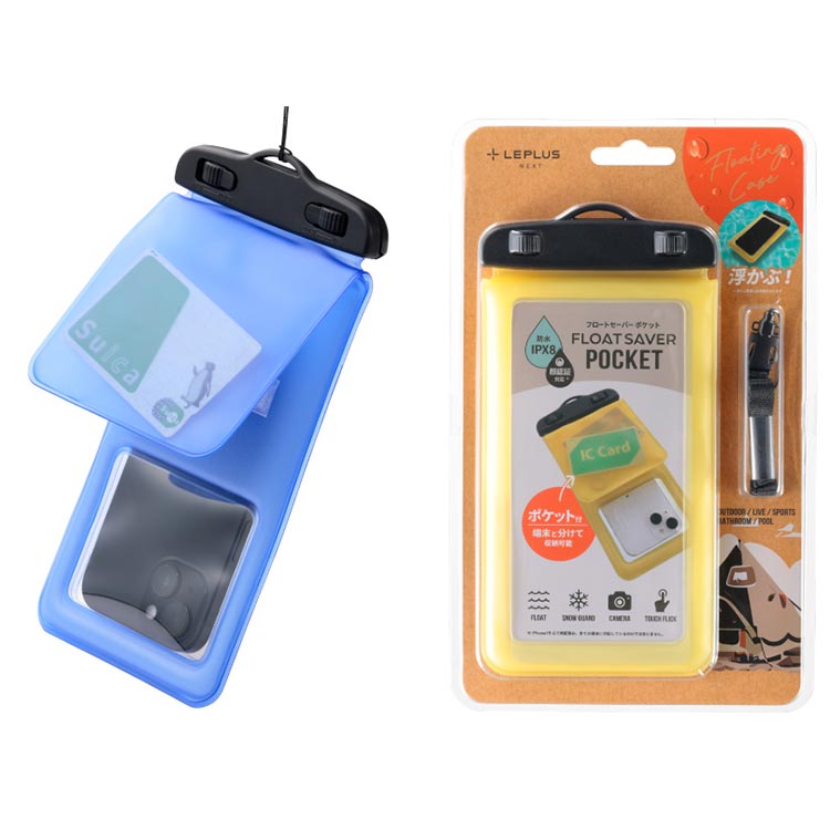 釣り、マリンスポーツ、お風呂など、スマホを水から守ることができるケースです。また、誤って、水中に落としたとき、スマホが沈むのを防ぐこともできます。