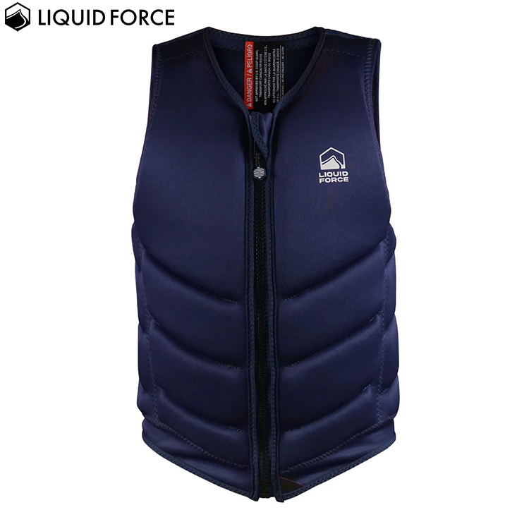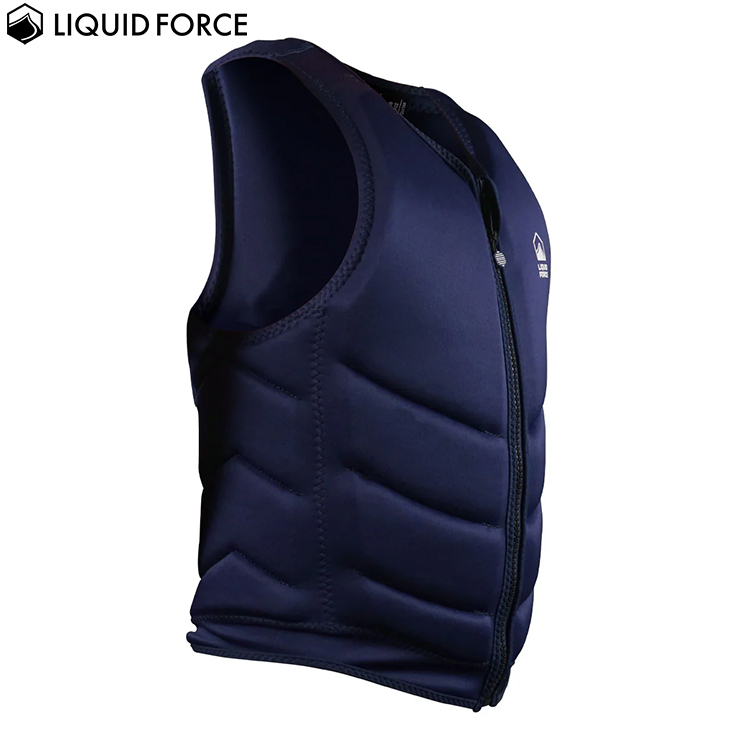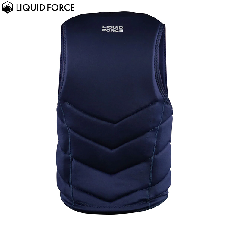 リキッドフォースの2025年モデルウエイクボード用メンズベスト(ライフジャケット)。浮力よりも動き易さを重視し薄目に作られたCOMPタイプのベスト。