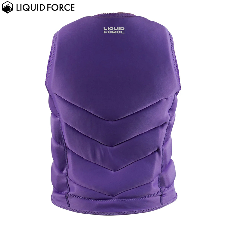 リキッドフォースの2025年モデルウエイクボード用ウィメンズベスト(ライフジャケット)。浮力よりも動き易さを重視し薄目に作られたCOMPタイプのベスト。
