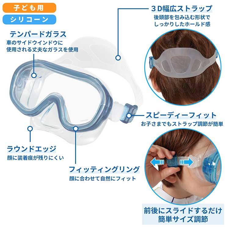 ◆マスクと排水弁付きシュノーケルの子供用2点セット