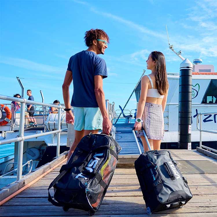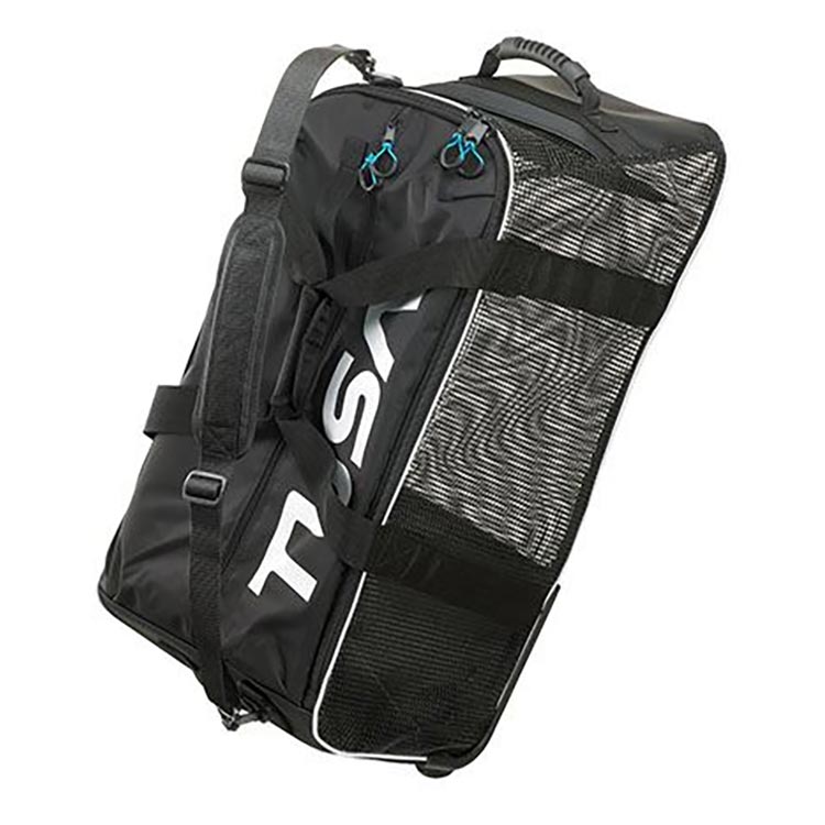 ダイビングギアを一式収納できるメッシュローラーバッグ。耐久性に優れたラバーメッシュを使用し、メインコンパートメントの開口部を大きくした、ウォータースポーツに最適なバッグです。内ポケット、ショルダーストラップ、頑丈なキャリーハンドル2本付き。◆大きな外ポケット