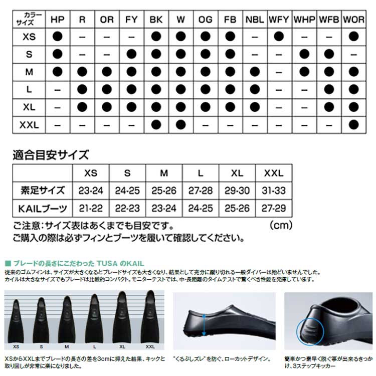 [セット内容]◆[ TUSA ] FF16Z カイル KAIL フルフットフィン ゴムフィン