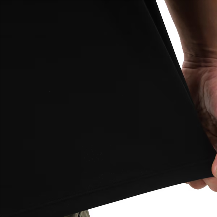 特殊な糸を採用し、薄手ながら透けにくいのが特長です。生地には適度なストレッチ性があり、柔らかな着心地。ポリエステル100%のため、乾きやすいのも特徴です。