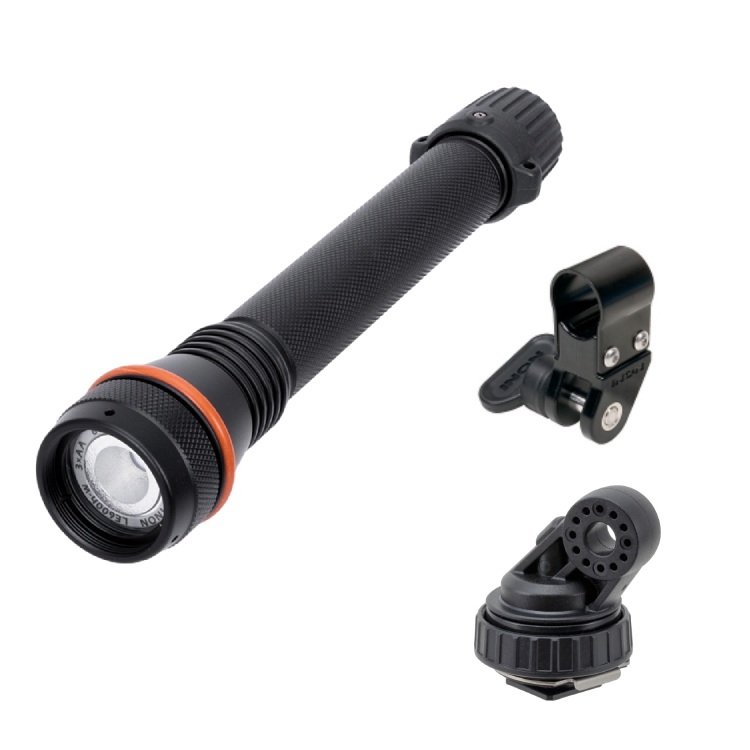 洞窟やナイトダイビングで広範囲を照らすのに威力を発揮する水中専用ライト。