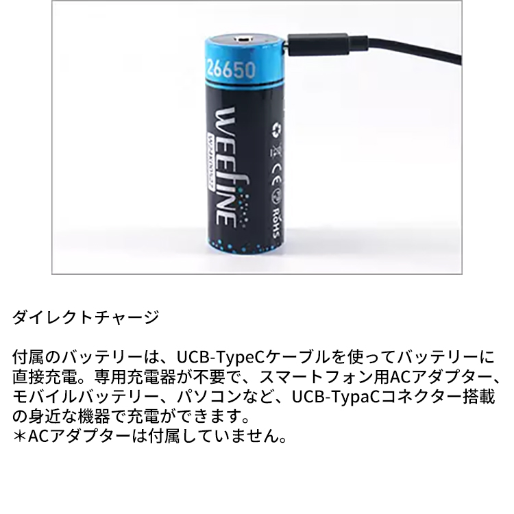 ◆バッテリー:26650 Li-ionバッテリー(WBL-13C)