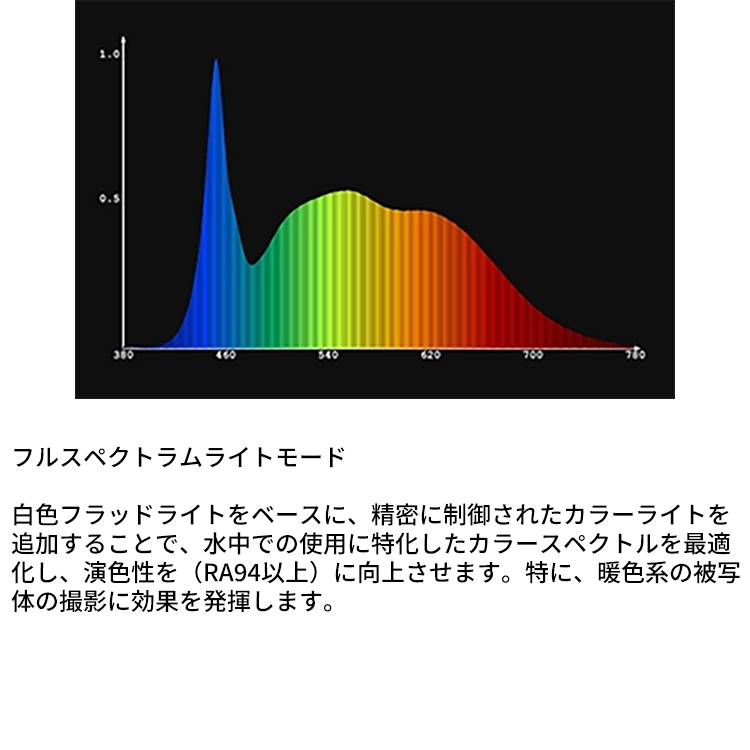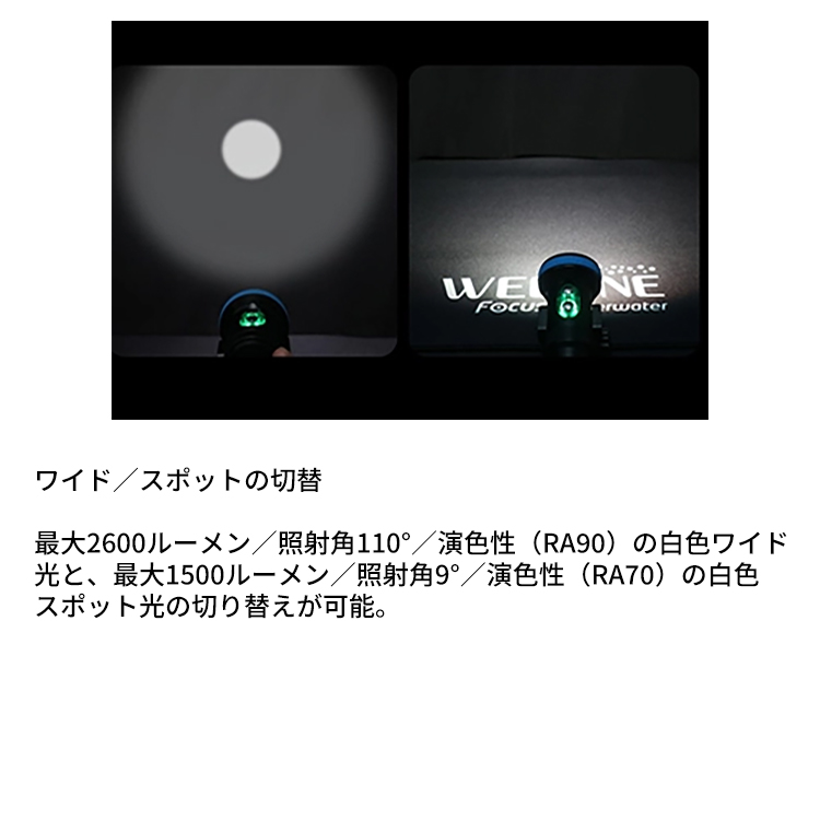 ◆水中照射角:110°(ワイド)/9°(スポット)