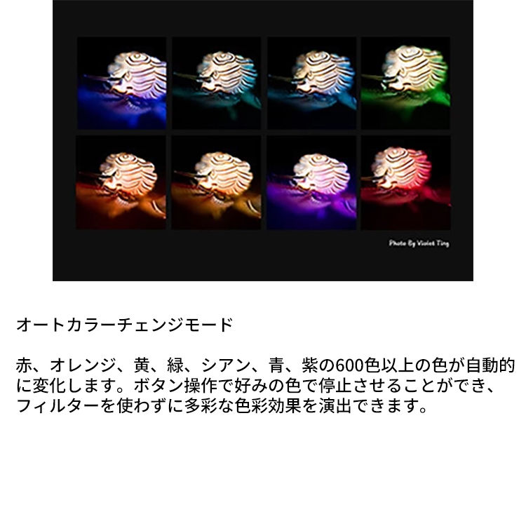 ◆多色LED で赤、オレンジ、黄、緑、シアン、青、紫の600 色以上の色を再現。好みの色を選択できます。