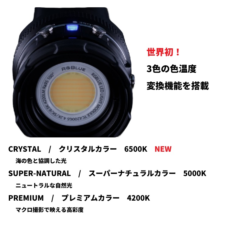 →4200K プレミアムカラー、5000K スーパーナチュラルカラー、新光色6500K クリスタルカラーの切替可能。