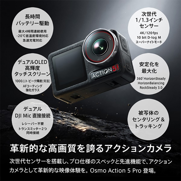 次世代1/1.3インチセンサーDJIの新型センサーが最高の瞬間を捉えます。街のナイトシーンからドラマチックな日の出まで、4 nmチップで、より鮮明な画像に仕上げます。2.4 μmピクセルと13.5ストップのダイナミックレンジで、プロ仕様のカメラに匹敵する鮮やかな映像体験を提供します。