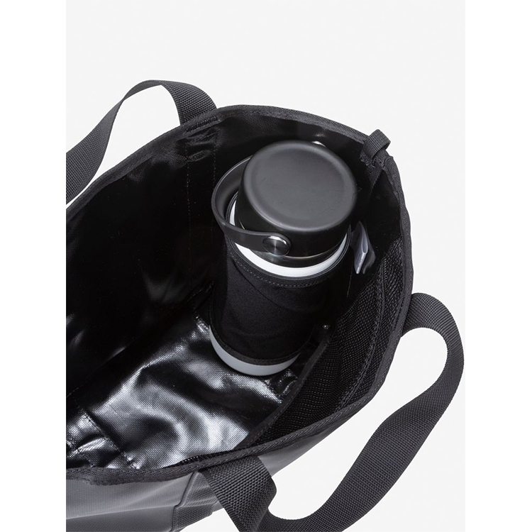 本体内部には、ボトルや傘を収納できるスリーブを装備。荷物のない状態でも自立する構造で、スムーズに収納できます。トップの両サイドにあるループを利用して、ショルダースタイルでも使えます。タウンユースからアウトドアフィールドまで幅広いシーンで活躍するアイテムです。