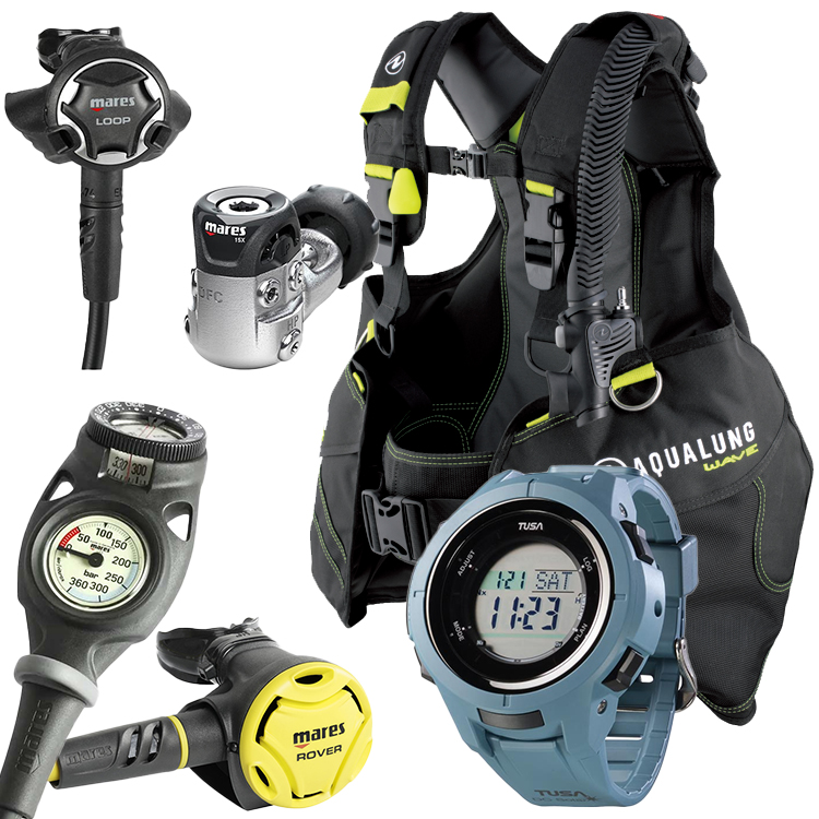 [ アクアラング ] ウェーブ AQUALUNG WAVE BC + レギュ LOOP 15X + ダイブコンピュータ ( IQ1203 ) ダイビング重器材5点セット
