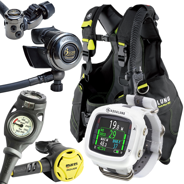 [ アクアラング ] ウェーブ AQUALUNG WAVE BC + レギュ RX4100DL + ダイブコンピュータ ( i330R ) ダイビング重器材5点セット