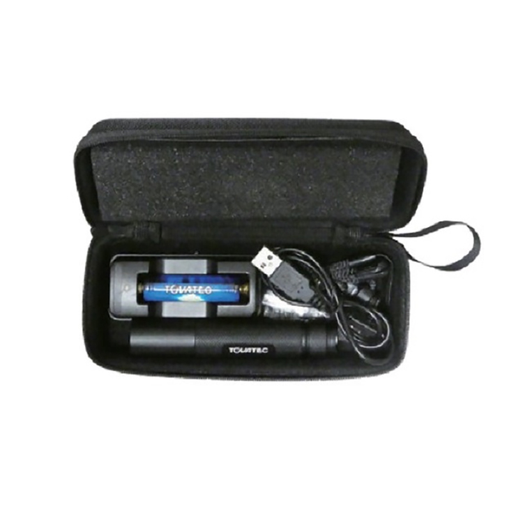 ●付属品 :14500 Li-ion バッテリー、USB 充電ケーブル、USB 充電台、パッド⼊りケース、ストラップ、予備O リング
