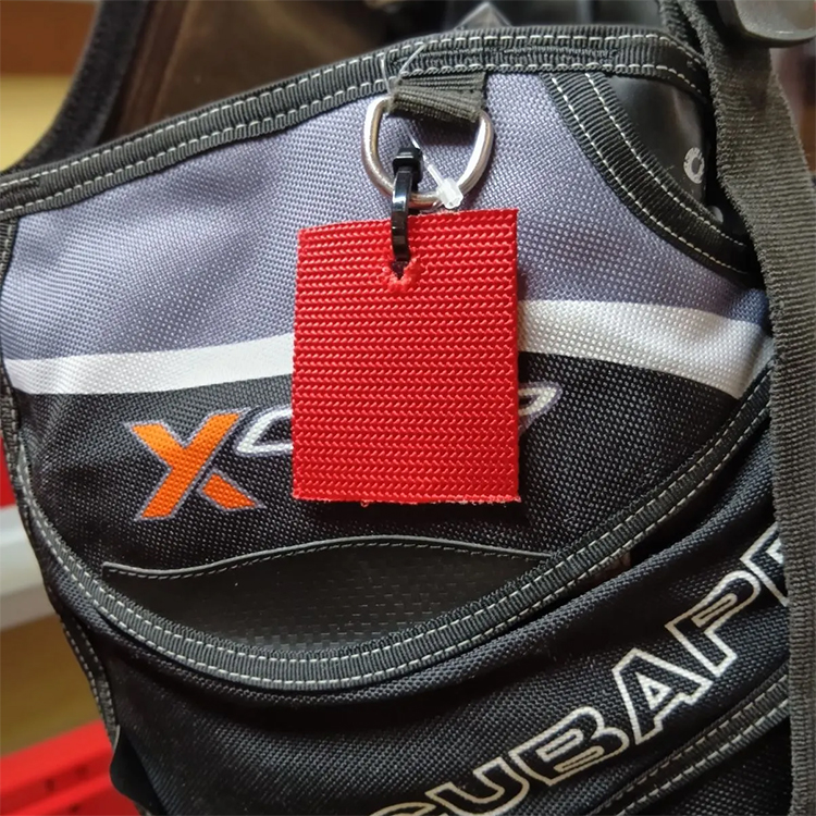 Dリングに赤いウェイトベルトの切れ端有。