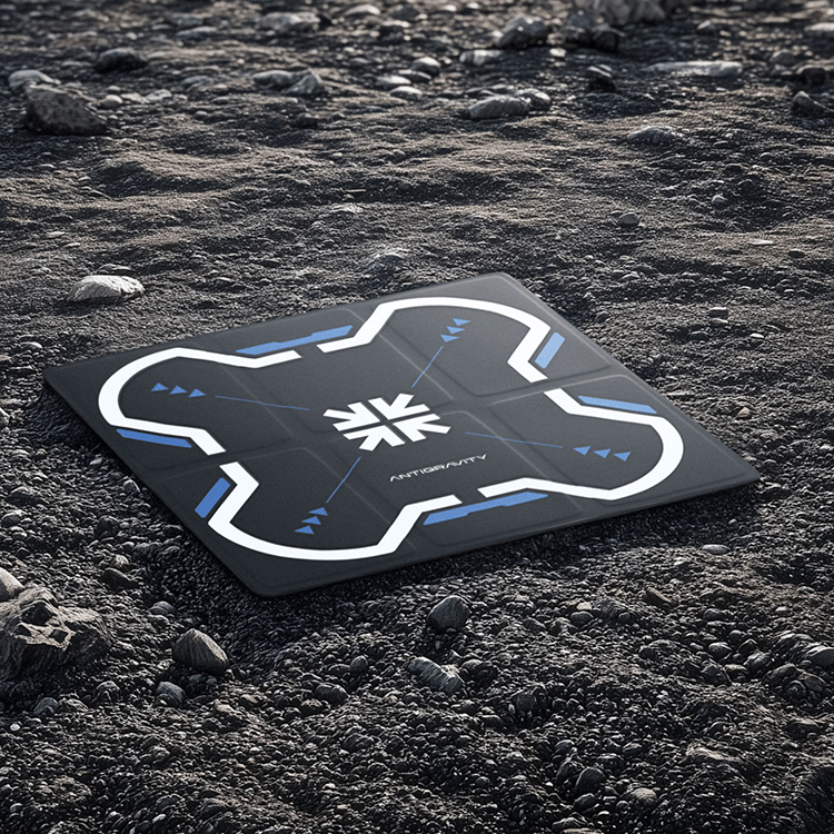 A1ドローン用に設計されたランディングパッド。地面に広げるだけでどんな場所でも安全な離着陸ゾーンを作ることができます。着陸時はドローン本体が自動でランディングパッドの位置を認識するので、自立した着陸を正確に行うことが可能になります。